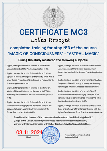 karmologiją – santykių, likimo ir sielos pamokų analizę, astralinės praktikos.