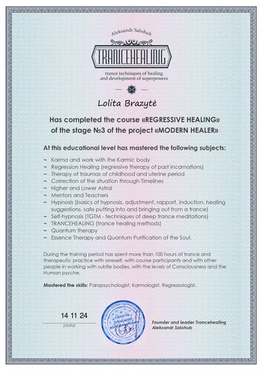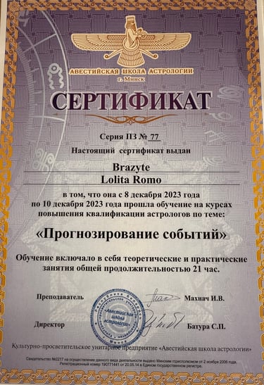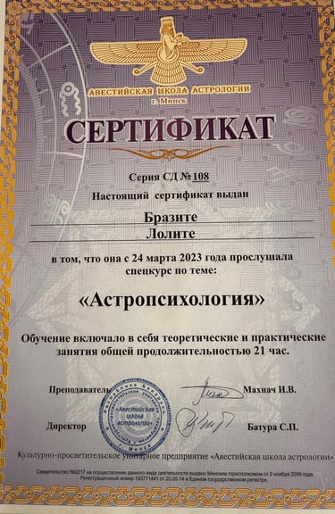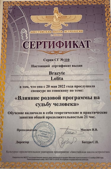 Ezoterika, karmologija, astrologija, regresinė terapija, bioenergetika, santykių ir priklausomybių konsultacijos.